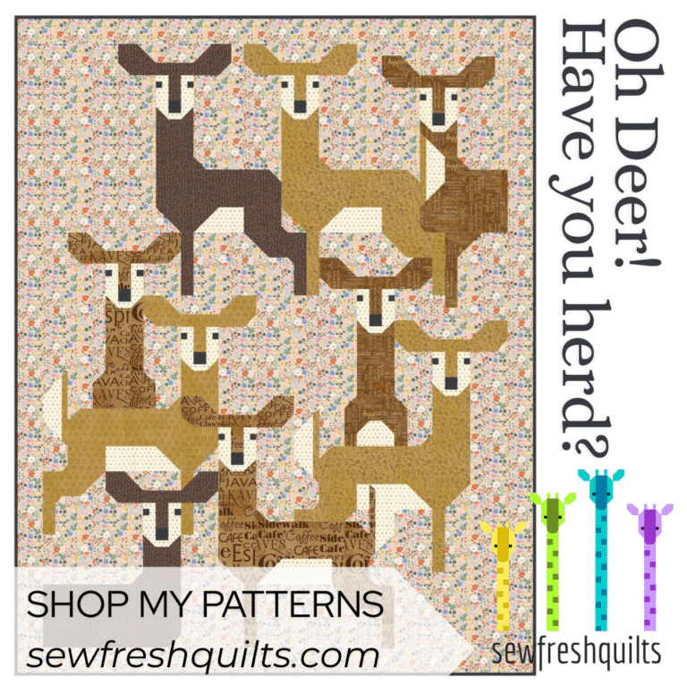 My “Duck and Ducklings” quilt is one of my most recent designs in a series using a combination of 10″ blocks that feature both animal blocks and traditional quilt block designs. These Duck blocks are paired together with the traditional “Duck and Ducklings” block.