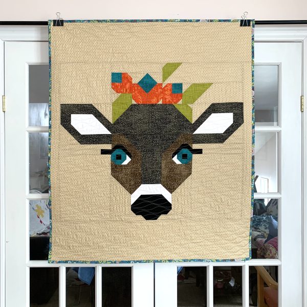 Hello lovely friends! I am so excited to introduce my Baby Deer quilt! Nose my way in here… The background print is Berries by Edyta Sitar of Laundry Basket Quilts for Andover Fabrics. The backing is Good Vibes Only by Shayla Wolf of Sassafras Lane Designers for Windham Fabrics. It’s