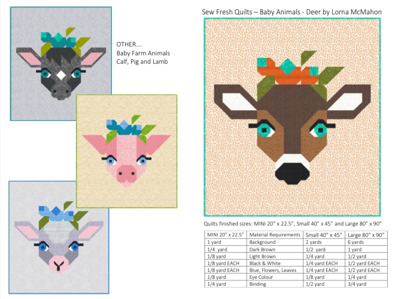 Animal Baby Deer quilt finished sizes are: