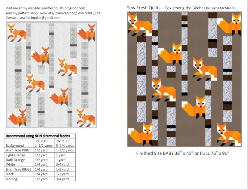 The Fox among the Birches Quilt Pattern includes: