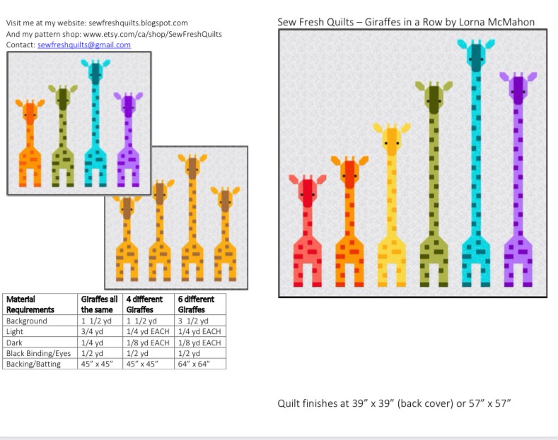 The Giraffes in a Row Quilt Pattern includes: