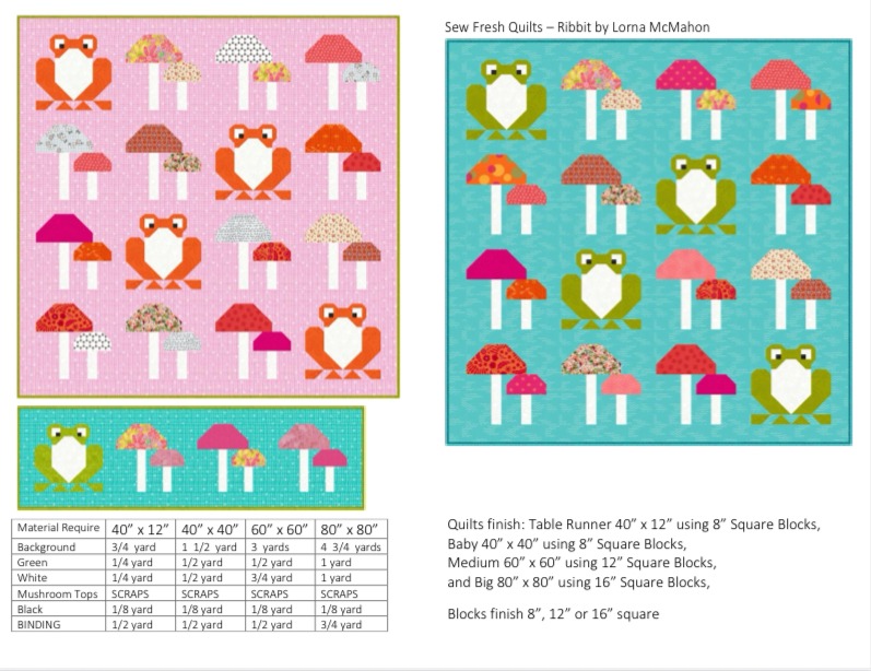 Quilts finish: Table Runner 40” x 12” using 8” Square Blocks, Baby 40” x 40” using 8” Square Blocks,